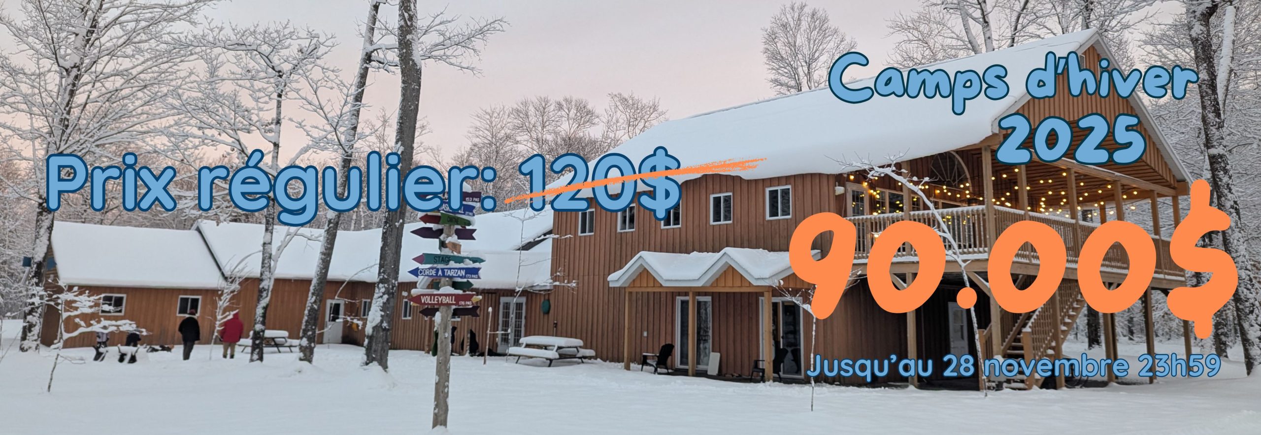 Profitez du rabais inscription très hâtive avant Black Friday ! Seulement 90 $ par camp jusqu’au 28 novembre à 23h59 !