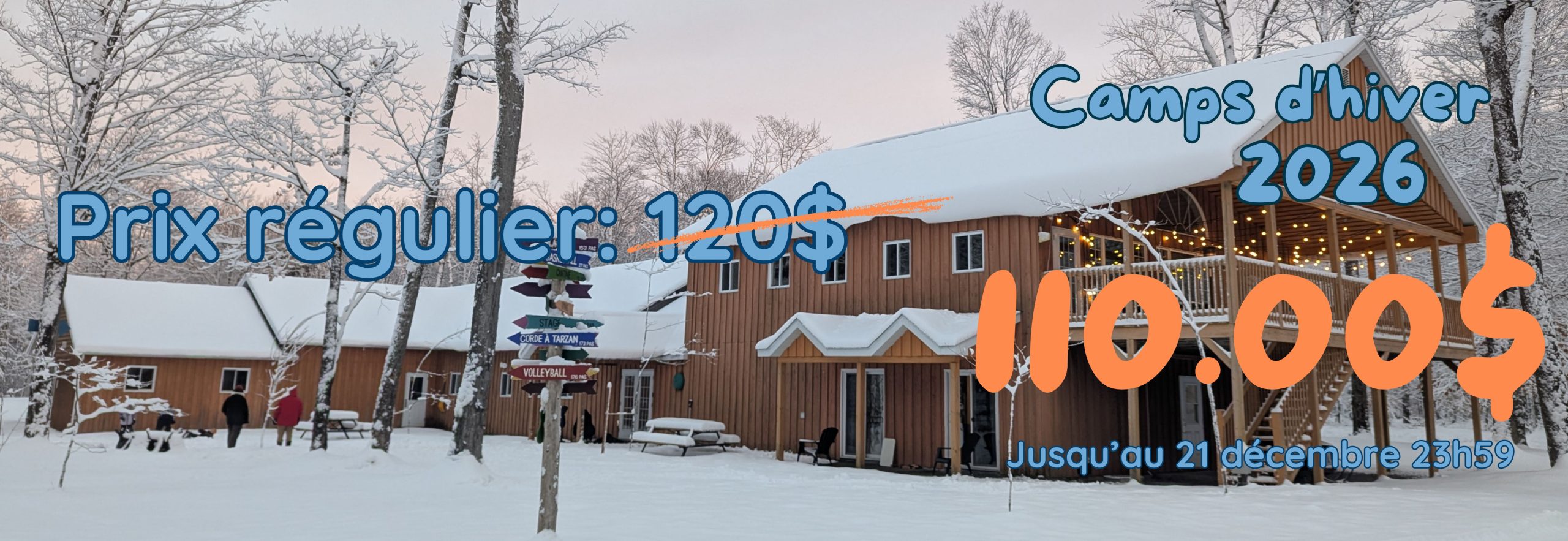 Profitez du rabais inscription très hâtive avant Black Friday ! Seulement 90 $ par camp jusqu’au 28 novembre à 23h59 !